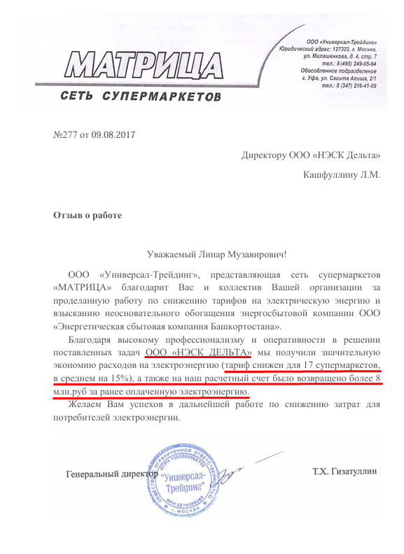 Наша работа оплачивается только из фактически полученной выгоды: возврата переплаты или достигнутой экономии на электроэнергии.